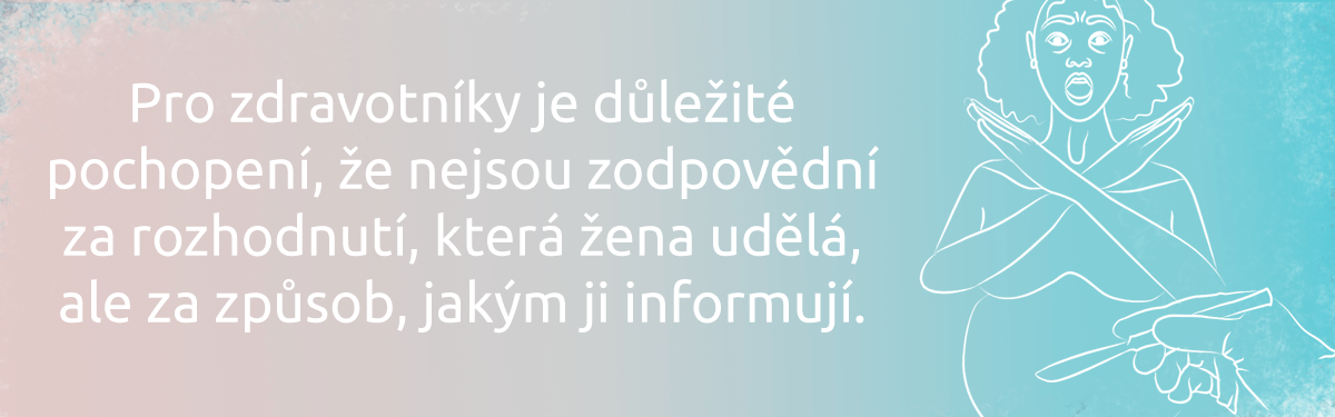 Pro zdravotníky je důležité pochopení, že nejsou zodpovědní za rozhodnutí, která žena udělá, ale za způsob, jakým ji informují. Více se můžete dočíst v článku o informovaném souhlasu.