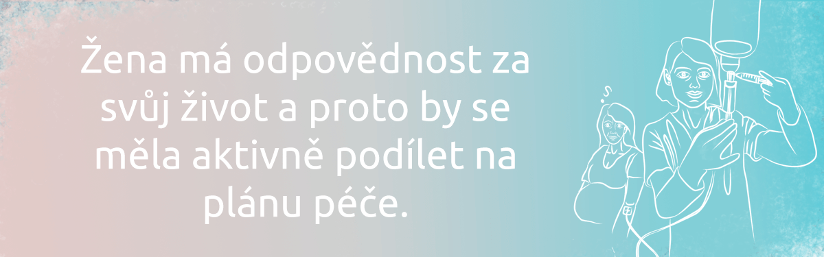 Žena má (až na výjimečné situace) odpovědnost za svůj život. I proto by se měla aktivně podílet na plánu péče a to v takovém rozsahu, v jakém si přeje. Také to znamená, že by měla mít přístup k informacím založeným na důkazech (evidence-based) a možnost sama si vybrat poskytovatele péče. Informace by s ní měly být sdíleny objektivně, s respektem a odborností, v rozsahu, který reflektuje její potřeby, a takovým způsobem, aby je pochopila.