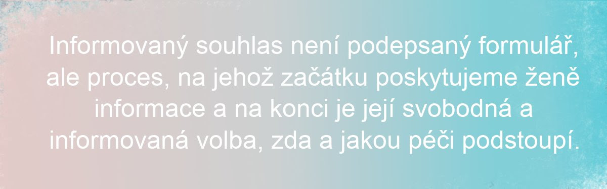 Zásadní téma informovaného souhlasu je přijetí myšlenky, že žena má právo na rozhodnutí a povinností zdravotníka je informovat ji a poté respektovat její rozhodnutí. A to i přesto, že s ním sám nesouhlasí.