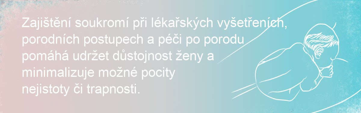 Každá žena má své vlastní očekávání ohledně soukromí a intimity a jejich narušení také individuálně a citlivě prožívá. Respektování osobních hranic pomáhá posílit důvěru ženy v nás, jako poskytovatele péče, a vytváří podporující prostředí. Fyzické aspekty těhotenství a porodu jsou často citlivé a osobní. Zajištění soukromí při lékařských vyšetřeních, porodních postupech a péči po porodu pomáhá udržet důstojnost ženy a minimalizuje možné pocity nejistoty či trapnosti. Vytvoření intimního a klidného prostředí je klíčové pro podporu přirozeného průběhu porodu. Emocionální a psychická pohoda ženy může mít pozitivní vliv na samotný porodní proces.